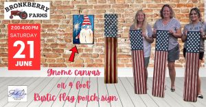 Choose between a sparkler gnome or American flag design. While you’re here, browse our flower selection and all the goodies in our general store, including homemade pies, local cheese, meat, farm fresh eggs and canned goods! BYO beverages, the rest of the supplies will be provided.