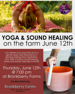 Melissa and Jason Bruce will be taking you through a yoga class and sound bath. Come spend the evening becoming one with the earth and quieting your mind.