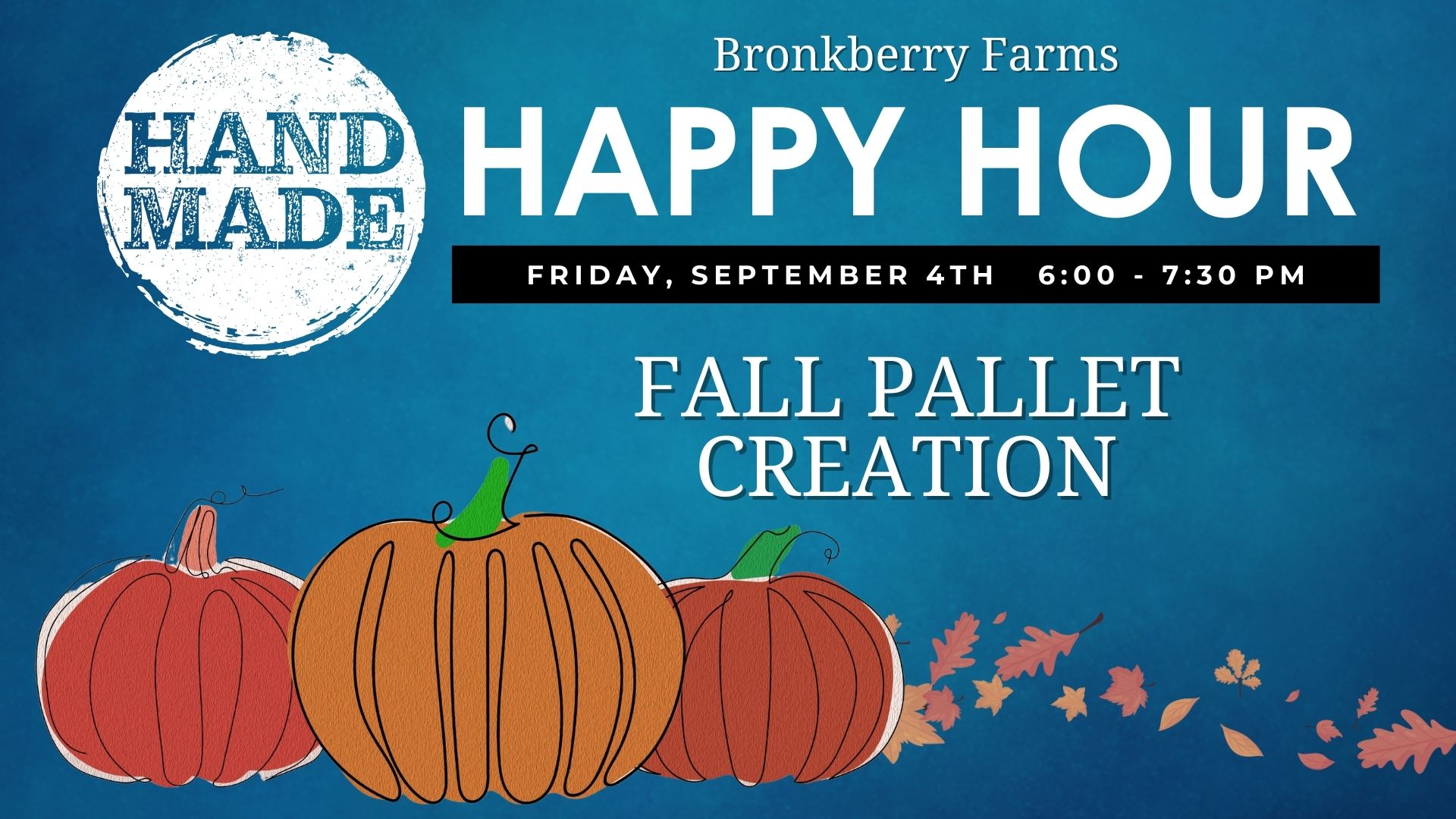 Bronkberry Farms & Greenhouse, 18061 Bronk Rd, Plainfield, IL 60586, USAFall-Inspired Pallet Wood Creation A rustic BYOB craft night at Handmade Happy Hour ๐๐ชต Get creative with texture, tone, and all things fall at our Fall-Inspired Pallet Wood Creation Class, ...